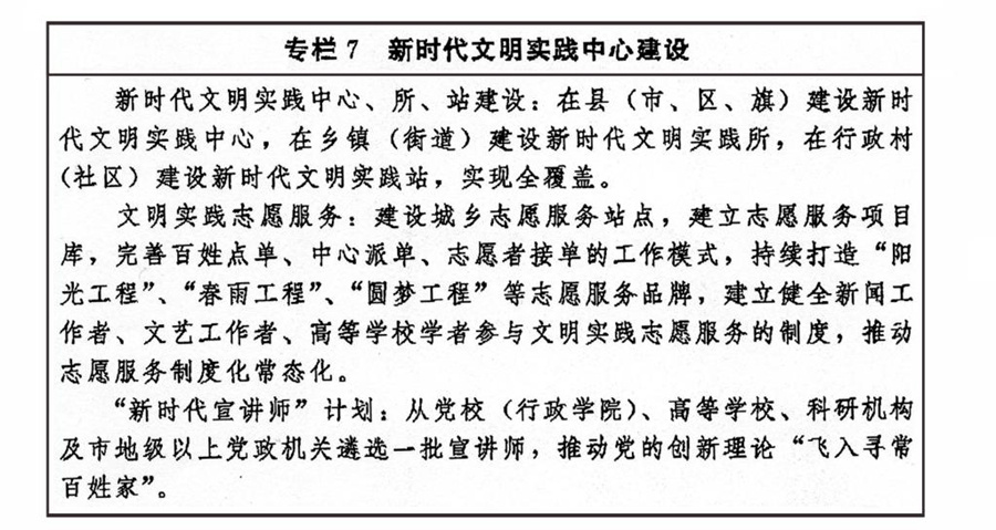 以實(shí)施文明創(chuàng)建工程為抓手,推動(dòng)文明培育、文明實(shí)踐、文明創(chuàng)建不斷深入。創(chuàng)造性開展文明城市、文明村鎮(zhèn)、文明單位、文明家庭、文明校園和未成年人思想道德建設(shè)工作先進(jìn)等精神文明創(chuàng)建活動(dòng),拓展新時(shí)代文明實(shí)踐中心建設(shè)。弘揚(yáng)科學(xué)精神,深入開展愛國衛(wèi)生運(yùn)動(dòng),深化文明餐桌行動(dòng)和“光盤行動(dòng)”,倡導(dǎo)文明健康、綠色環(huán)保的生活方式。健全志愿服務(wù)體系,廣泛開展志愿服務(wù)關(guān)愛行動(dòng)。加強(qiáng)網(wǎng)絡(luò)文明建設(shè)。