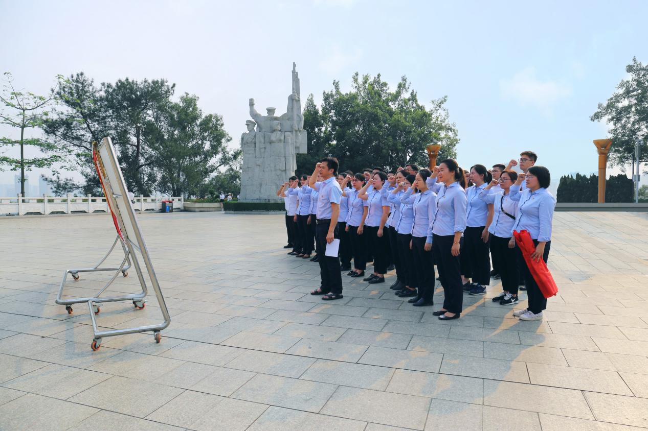 ????????隨后,30余名黨員面向黨旗莊嚴(yán)宣誓,重溫入黨誓詞。“我志愿加入中國(guó)共產(chǎn)黨,擁護(hù)黨的綱領(lǐng),遵守黨的章程……”鏗鏘有力的宣誓聲,響徹紀(jì)念碑園。表達(dá)了緬懷革命先烈,傳承紅色基因的真摯感情和堅(jiān)定信心。