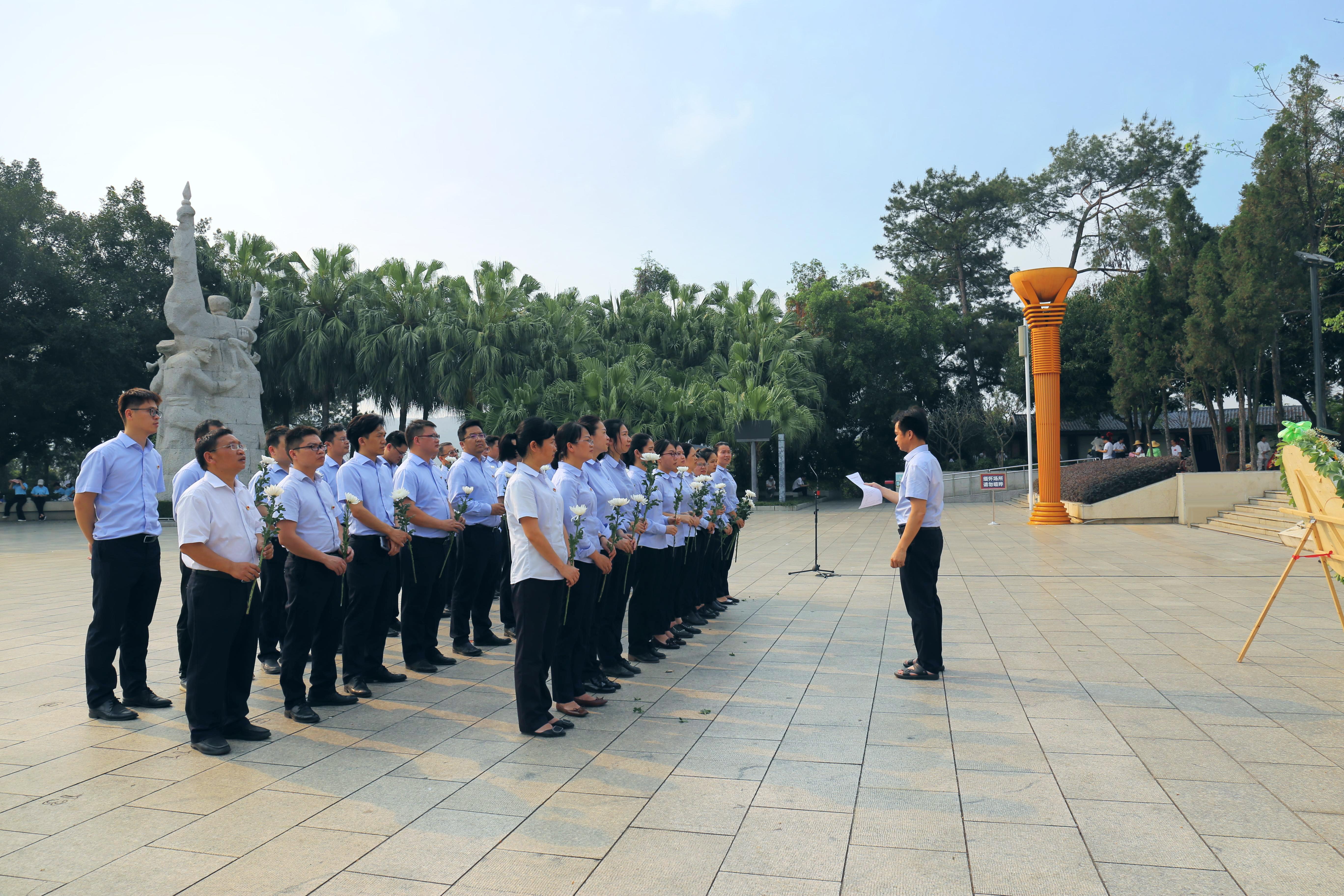 ????????全體黨員肅立默哀,向革命先烈敬獻(xiàn)花圈,莊重鞠躬表達(dá)對(duì)烈士的深切哀悼和無(wú)盡的敬仰之情。在黨支部書(shū)記岑文同志的帶領(lǐng)下,大家懷著對(duì)先烈無(wú)比崇敬的心情,列隊(duì)拾階繞碑體一周,并依次上臺(tái)為烈士們獻(xiàn)花,表達(dá)對(duì)革命烈士崇高的敬意和深切的哀思。