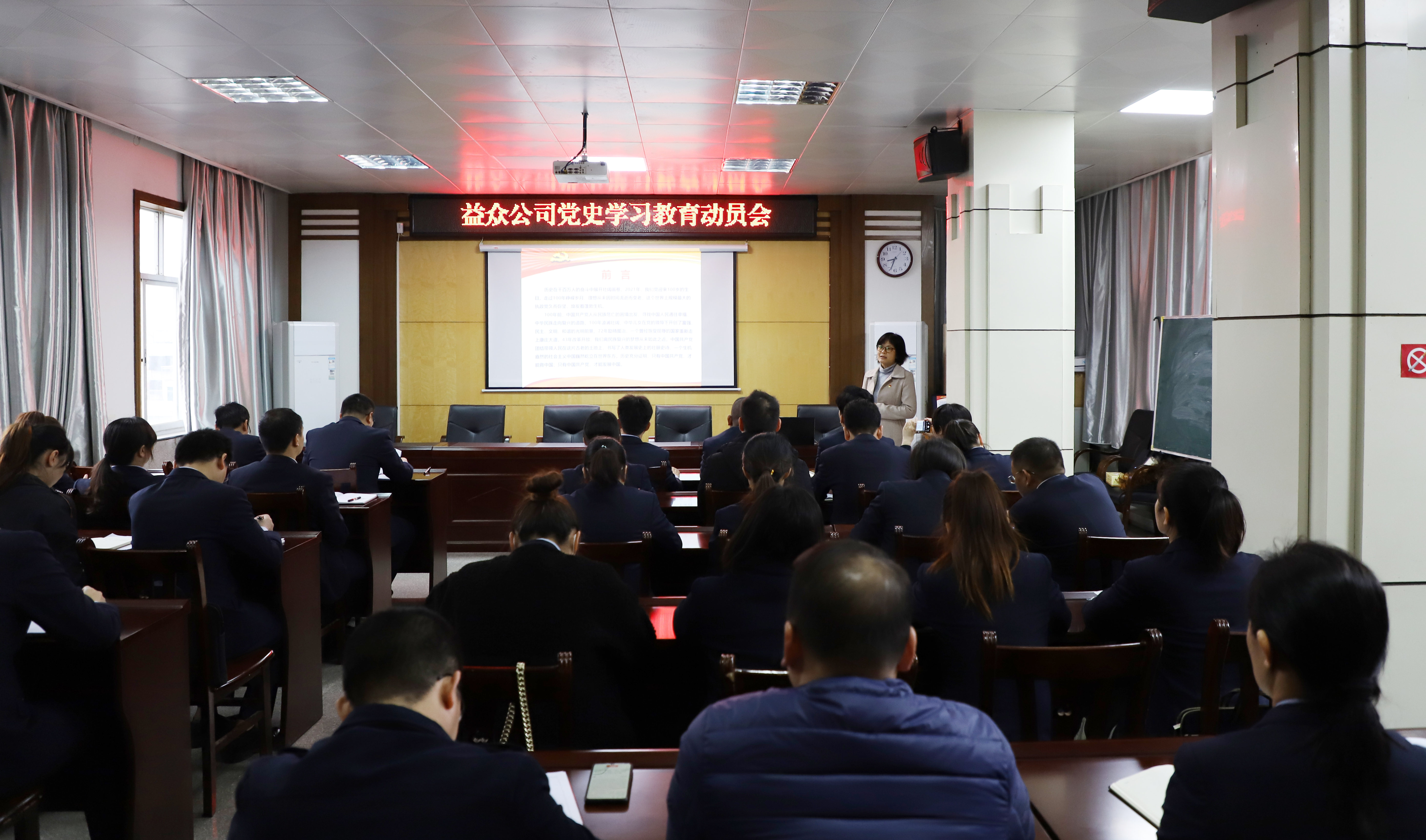 ????????3月12日上午,益眾公司召開黨史學習教育動員會,進一步深入學習貫徹習近平新時代中國特色社會主義思想,鞏固深化“不忘初心、牢記使命”主題教育成果,提高公司領導干部及黨員黨性修養(yǎng),并就公司開展黨史學習教育進行安排部署。益眾公司黨支部書記作動員講話。