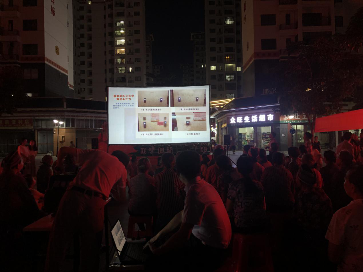 ????????活動開展期間,益眾物業(yè)公司工作人員用壯話為業(yè)主講解小區(qū)存在的不文明現(xiàn)象,講解相關文明知識,指出生活上因違規(guī)操作導致的安全問題等。活動通過播放文明行為宣傳片,公示生活中存在的不文明行為等方式全面深入向業(yè)主普及文明知識。