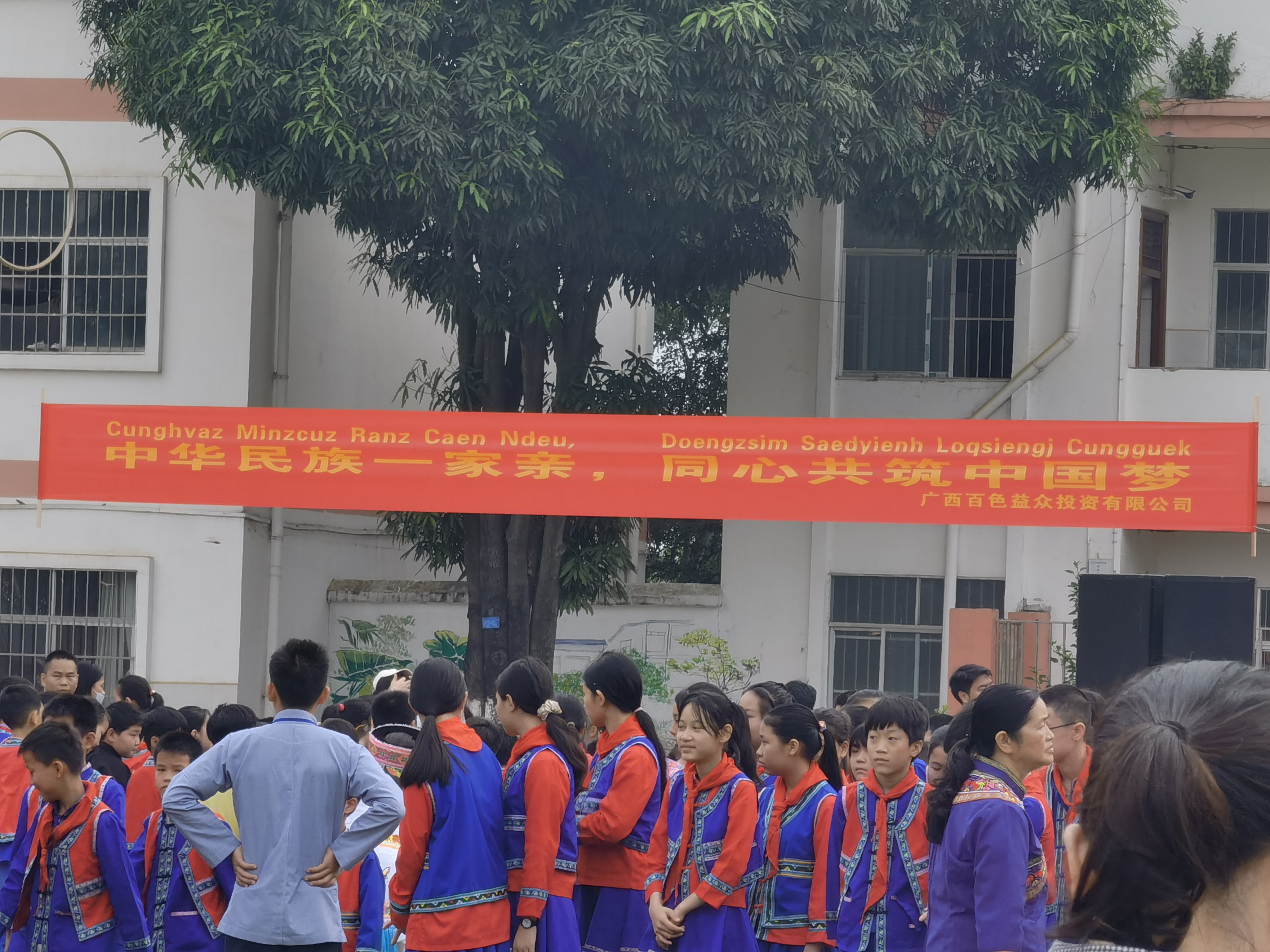 ????????近日,潤益商貿(mào)公司有關(guān)人員受邀走進(jìn)百色市大華民族學(xué)校,參加百色市民族團(tuán)結(jié)進(jìn)步宣傳月活動(dòng)。大家歡聚一堂,載歌載舞,感黨恩,跟黨走,鑄牢中華民族共同體意識(shí)。