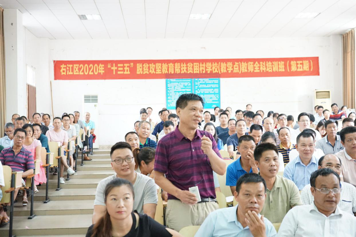 ????????為積極配合百色市右江區(qū)教育局推動右江區(qū)義務(wù)教育課程改革,提升教師隊(duì)伍的專業(yè)素養(yǎng)和理論水平,優(yōu)化教師隊(duì)伍結(jié)構(gòu),推進(jìn)右江區(qū)義務(wù)教育均衡發(fā)展。近日,百色市右江區(qū)教育局主辦,廣西百色益眾教育投資有限公司與百色學(xué)院聯(lián)合開展了右江區(qū)2020年小學(xué)科學(xué)、信息技術(shù)、道德與法制、語文、數(shù)學(xué)教師及班主任能力提升培訓(xùn),各班培訓(xùn)期4天,共有來自右江區(qū)各小學(xué)相關(guān)科目老師約1700人參加了本期培訓(xùn)。