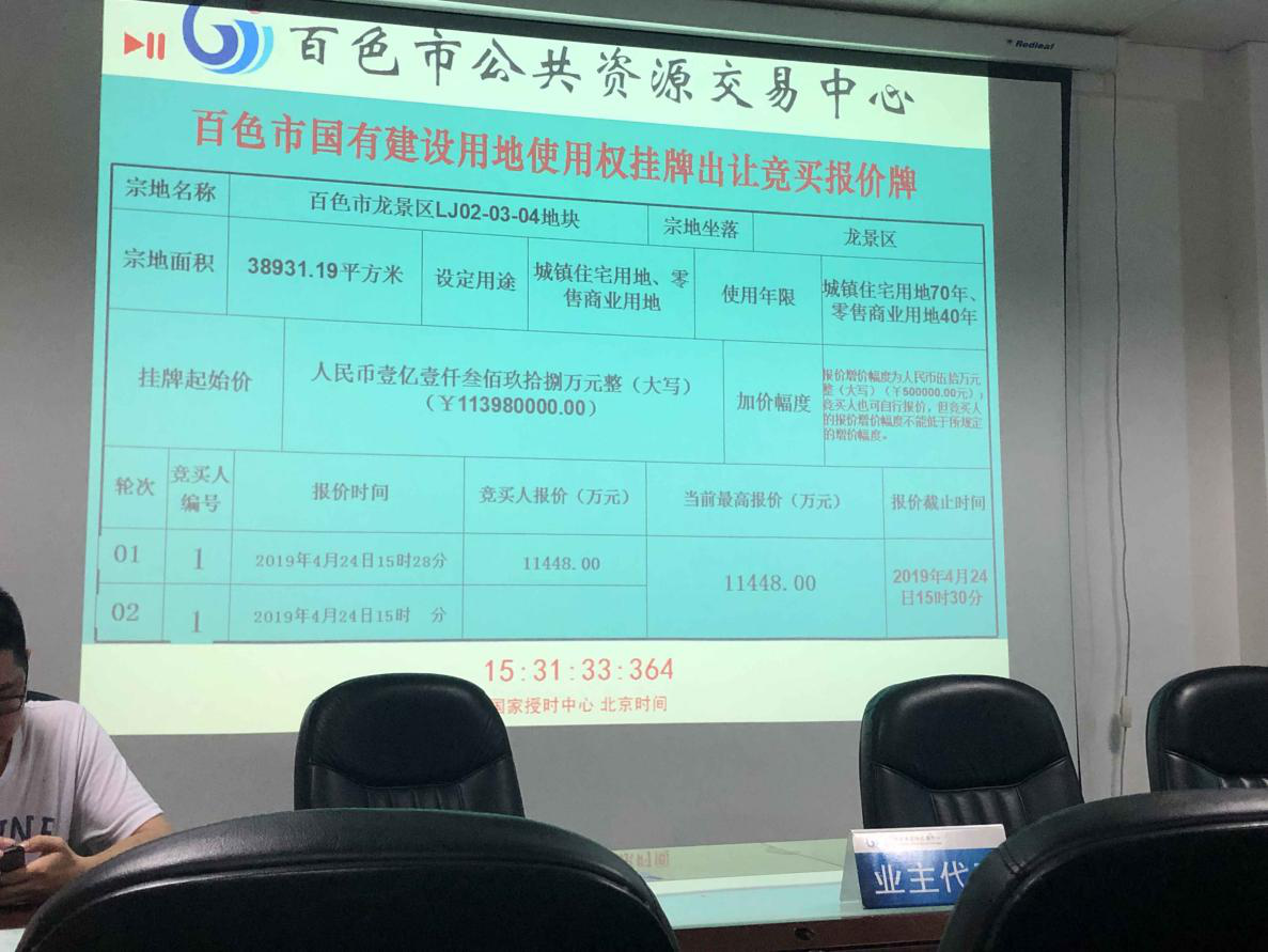 2019年4月24日,百色市龍景區(qū)LJ02-03-04地塊被景益置業(yè)公司以總價(jià)11448萬(wàn)元競(jìng)得,該地塊為百色市棚戶區(qū)改造項(xiàng)目--那畢片區(qū)一期改造項(xiàng)目A地塊用地。