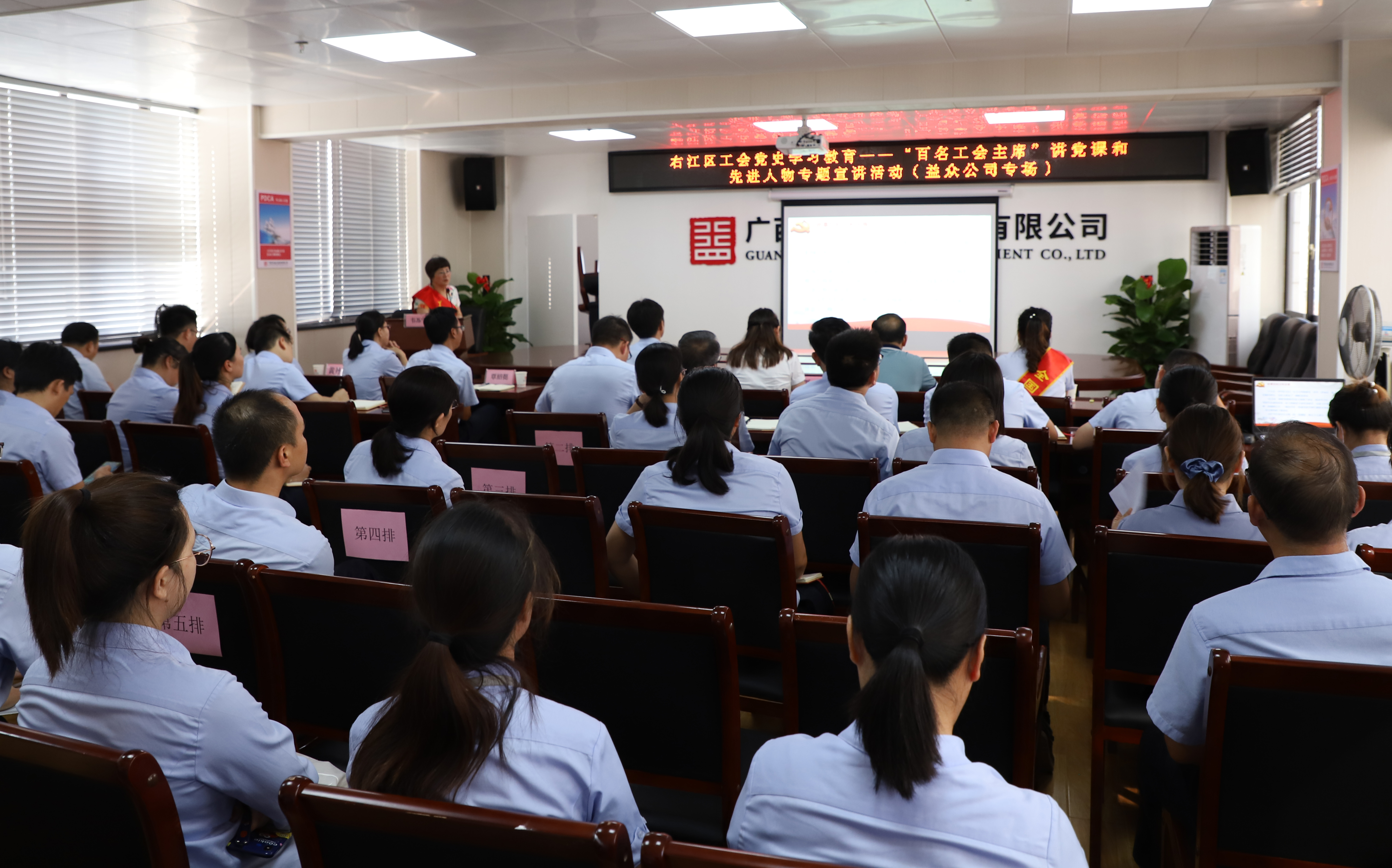 ????????6月18日,百色市工會黨史學(xué)習(xí)教育——“百名工會主席”講黨課和先進人物專題宣講活動(益眾公司專場)在益眾公司城北路辦公區(qū)11樓會議室舉行。百色市總工會黨組成員、經(jīng)審會主任黃光日,全國先進工作者、全國五一勞動獎?wù)隆叶悇?wù)總局百色市右江區(qū)稅務(wù)局稅源管理股副股長林恒和自治區(qū)先進工作者、廣西特級教師、自治區(qū)德育先進工作者百色市逸夫小學(xué)校長韋蘇寧分別作黨史黨課、黨史學(xué)習(xí)教育宣講報告,右江區(qū)總工會黨組書記、常務(wù)副主席覃璘清主持會議。益眾公司領(lǐng)導(dǎo)、全體黨員、入黨積極分子、職工代表等約80人參加宣講活動。