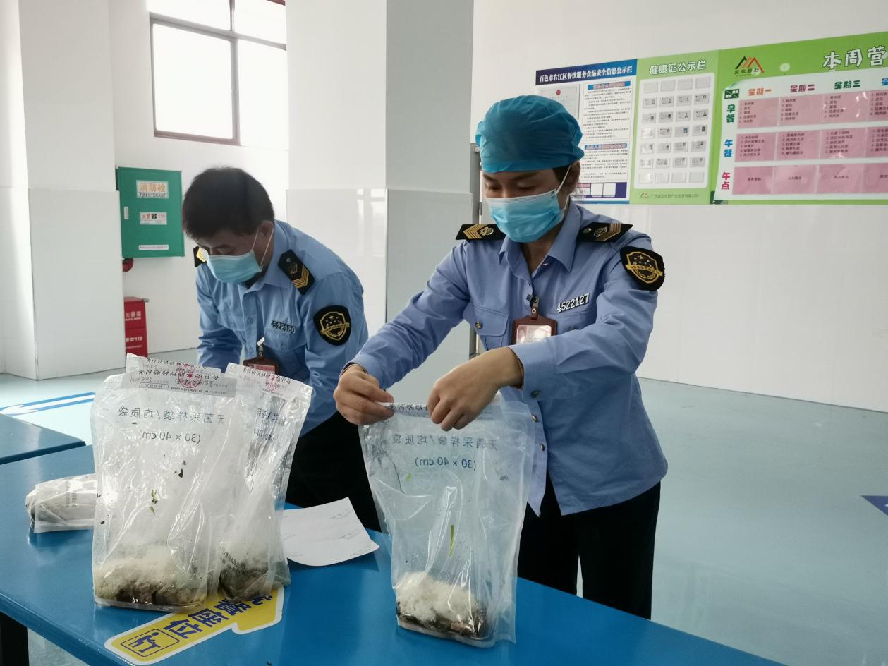 檢查組對(duì)當(dāng)日加工食材進(jìn)行安全抽樣檢測(cè)封存