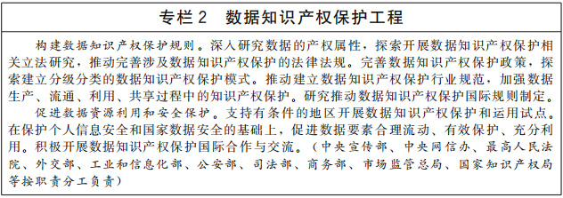 完善知識產(chǎn)權(quán)保護政策。健全大數(shù)據(jù)、人工智能、基因技術(shù)等新領(lǐng)域新業(yè)態(tài)知識產(chǎn)權(quán)保護制度。研究構(gòu)建數(shù)據(jù)知識產(chǎn)權(quán)保護規(guī)則。完善開源知識產(chǎn)權(quán)和法律體系。完善電子商務(wù)領(lǐng)域知識產(chǎn)權(quán)保護機制。健全遺傳資源獲取和惠益分享制度,建立跨部門生物遺傳資源獲取和惠益分享信息共享制度。制定傳統(tǒng)文化、民間文藝、傳統(tǒng)知識等領(lǐng)域保護辦法。建立與非物質(zhì)文化遺產(chǎn)相關(guān)的知識產(chǎn)權(quán)保護制度。完善體育賽事節(jié)目、綜藝節(jié)目、網(wǎng)絡(luò)直播等領(lǐng)域著作權(quán)保護制度。完善紅色經(jīng)典等優(yōu)秀舞臺藝術(shù)作品的版權(quán)保護措施。完善服裝設(shè)計等時尚產(chǎn)業(yè)知識產(chǎn)權(quán)保護政策。健全藥品專利糾紛早期解決機制,制定相關(guān)配套措施。完善中醫(yī)藥領(lǐng)域發(fā)明專利審查和保護機制。健全綠色技術(shù)知識產(chǎn)權(quán)保護制度。完善高校知識產(chǎn)權(quán)保護管理規(guī)定。建立知識產(chǎn)權(quán)侵權(quán)損害評估制度。(中央宣傳部、中央網(wǎng)信辦、最高人民法院、教育部、財政部、生態(tài)環(huán)境部、文化和旅游部、市場監(jiān)管總局、廣電總局、國家林草局、國家中醫(yī)藥局、國家藥監(jiān)局、國家知識產(chǎn)權(quán)局等按職責(zé)分工負(fù)責(zé))