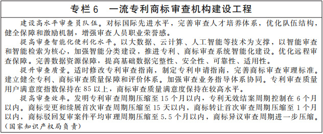提高知識產(chǎn)權(quán)審查質(zhì)量和審查效率。完善適應(yīng)創(chuàng)新發(fā)展需求的知識產(chǎn)權(quán)審查管理體系,優(yōu)化專利、商標(biāo)審查協(xié)作機制。提升專利商標(biāo)審查機構(gòu)能力水平,強化專利、商標(biāo)、版權(quán)、地理標(biāo)志、植物新品種全流程審查質(zhì)量管控,提升知識產(chǎn)權(quán)授權(quán)確權(quán)質(zhì)量。提高專利、商標(biāo)審查業(yè)務(wù)精細(xì)化管理水平,優(yōu)化審查資源配置,加強智能化技術(shù)運用,提升審查效能,縮短審查周期。完善專利、商標(biāo)審查模式,加強審查與產(chǎn)業(yè)發(fā)展的政策協(xié)同和業(yè)務(wù)聯(lián)動,滿足產(chǎn)業(yè)綠色轉(zhuǎn)型和新領(lǐng)域新業(yè)態(tài)創(chuàng)新發(fā)展等社會多樣化需求。(中央宣傳部、工業(yè)和信息化部、農(nóng)業(yè)農(nóng)村部、國家林草局、國家知識產(chǎn)權(quán)局等按職責(zé)分工負(fù)責(zé))