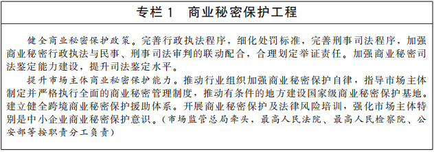健全知識產(chǎn)權(quán)法律法規(guī)。開展知識產(chǎn)權(quán)基礎(chǔ)性法律研究。統(tǒng)籌推進專利法、商標(biāo)法、著作權(quán)法、反壟斷法、科學(xué)技術(shù)進步法、電子商務(wù)法等相關(guān)法律法規(guī)的修改完善。加強地理標(biāo)志、商業(yè)秘密等領(lǐng)域立法,出臺商業(yè)秘密保護規(guī)定。完善集成電路布圖設(shè)計法規(guī)。推進修訂植物新品種保護條例。制定中醫(yī)藥傳統(tǒng)知識保護條例。完善與國防建設(shè)相銜接的知識產(chǎn)權(quán)法律制度。全面建立并實施知識產(chǎn)權(quán)侵權(quán)懲罰性賠償制度,加大損害賠償力度。研究建立健全符合知識產(chǎn)權(quán)審判規(guī)律的特別程序法律制度。適應(yīng)科技進步和經(jīng)濟社會發(fā)展需要,依法及時推動知識產(chǎn)權(quán)法律法規(guī)立改廢釋。(中央宣傳部、最高人民法院、最高人民檢察院、科技部、工業(yè)和信息化部、司法部、農(nóng)業(yè)農(nóng)村部、商務(wù)部、國家衛(wèi)生健康委、市場監(jiān)管總局、國家國防科工局、國家林草局、國家中醫(yī)藥局、國家知識產(chǎn)權(quán)局、中央軍委裝備發(fā)展部等按職責(zé)分工負(fù)責(zé))