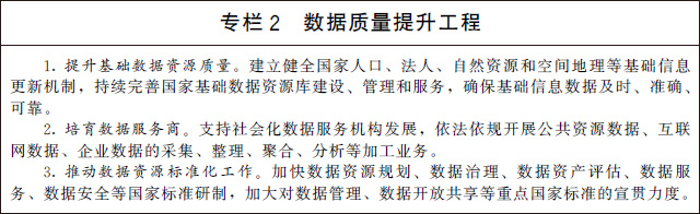 (一)強(qiáng)化高質(zhì)量數(shù)據(jù)要素供給。支持市場(chǎng)主體依法合規(guī)開展數(shù)據(jù)采集,聚焦數(shù)據(jù)的標(biāo)注、清洗、脫敏、脫密、聚合、分析等環(huán)節(jié),提升數(shù)據(jù)資源處理能力,培育壯大數(shù)據(jù)服務(wù)產(chǎn)業(yè)。推動(dòng)數(shù)據(jù)資源標(biāo)準(zhǔn)體系建設(shè),提升數(shù)據(jù)管理水平和數(shù)據(jù)質(zhì)量,探索面向業(yè)務(wù)應(yīng)用的共享、交換、協(xié)作和開放。加快推動(dòng)各領(lǐng)域通信協(xié)議兼容統(tǒng)一,打破技術(shù)和協(xié)議壁壘,努力實(shí)現(xiàn)互通互操作,形成完整貫通的數(shù)據(jù)鏈。推動(dòng)數(shù)據(jù)分類分級(jí)管理,強(qiáng)化數(shù)據(jù)安全風(fēng)險(xiǎn)評(píng)估、監(jiān)測(cè)預(yù)警和應(yīng)急處置。深化政務(wù)數(shù)據(jù)跨層級(jí)、跨地域、跨部門有序共享。建立健全國(guó)家公共數(shù)據(jù)資源體系,統(tǒng)籌公共數(shù)據(jù)資源開發(fā)利用,推動(dòng)基礎(chǔ)公共數(shù)據(jù)安全有序開放,構(gòu)建統(tǒng)一的國(guó)家公共數(shù)據(jù)開放平臺(tái)和開發(fā)利用端口,提升公共數(shù)據(jù)開放水平,釋放數(shù)據(jù)紅利。