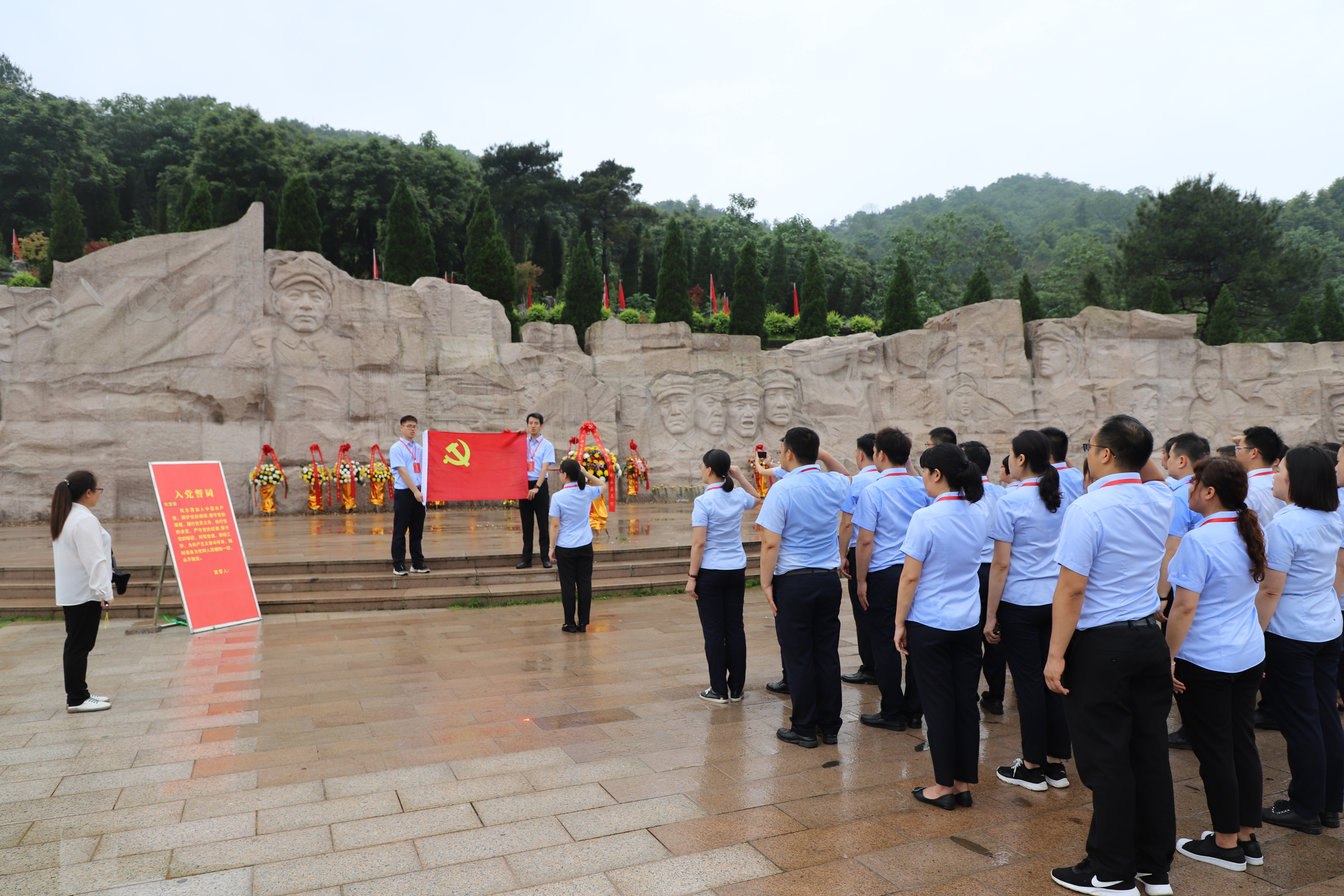 ????????伴著細(xì)雨,懷著哀思,6月3日下午,全體學(xué)員在湘江戰(zhàn)役紀(jì)念碑園憑吊廣場進(jìn)行了莊嚴(yán)的祭奠革命先烈儀式,向壯烈犧牲的紅軍將士集體默哀、敬獻(xiàn)花籃,深切悼念為革命事業(yè)犧牲的人民英雄。隨后全體黨員重溫入黨誓詞,回望初心使命,堅(jiān)定政治信仰。